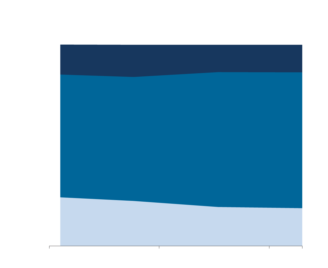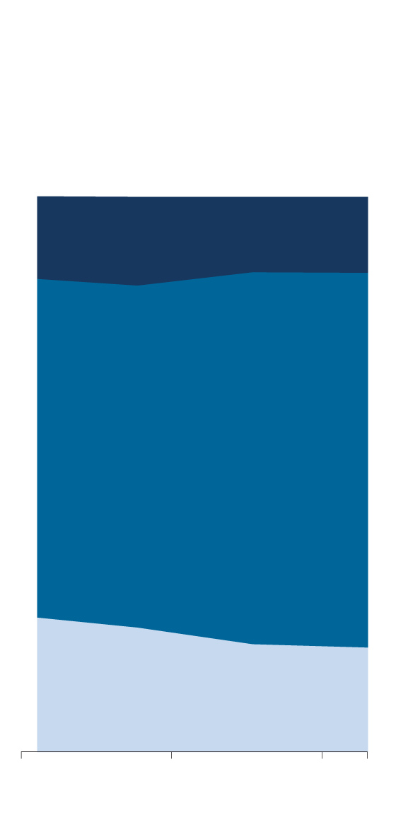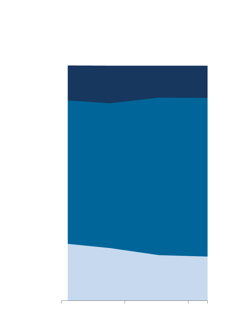 % of adult population in middle-, lower- and upper-income tiers, 1991 to 2013